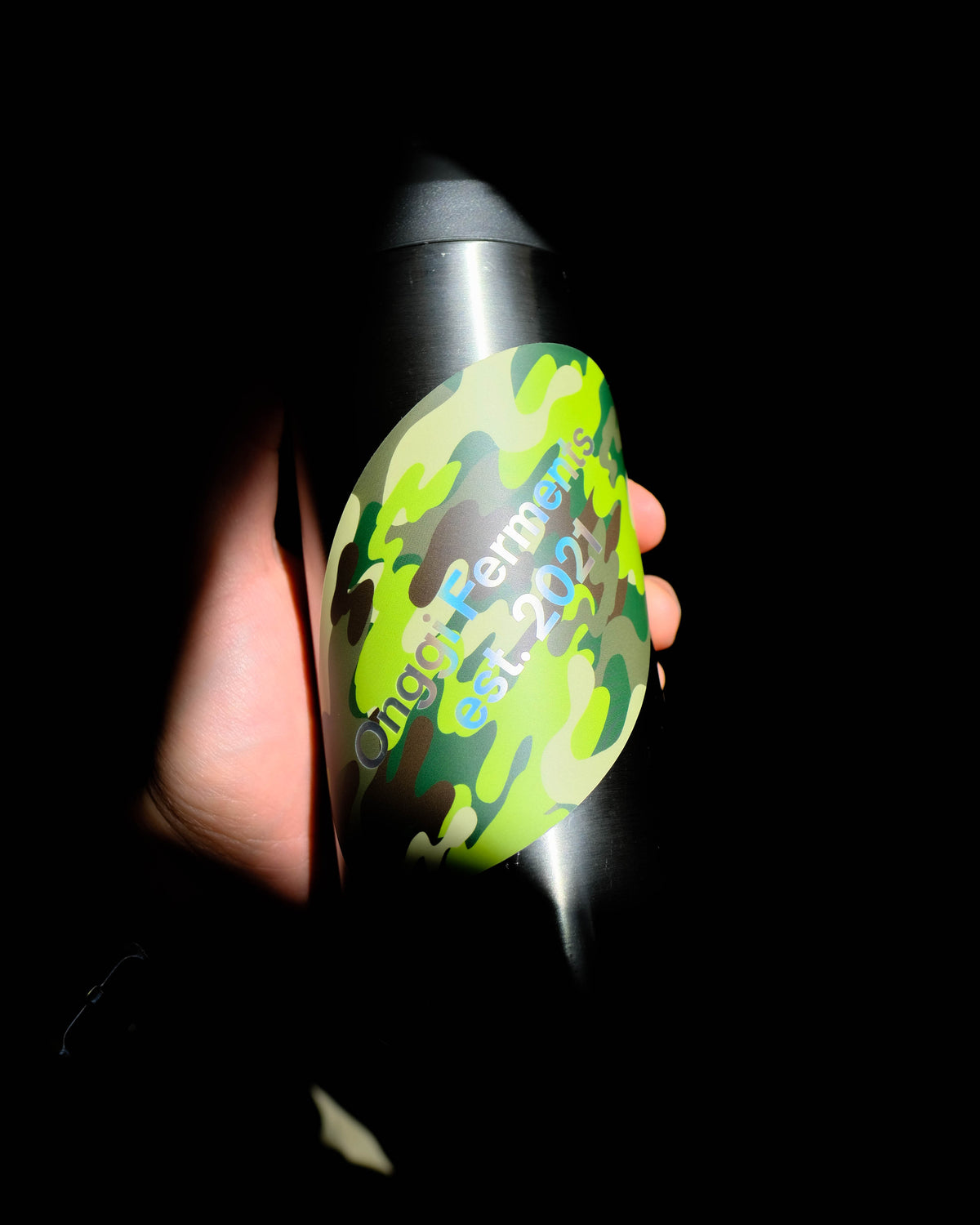 A spilled-matcha-on-your-shirt inspired camo holographic sticker for all your camo sticker needs! Text is holographic.