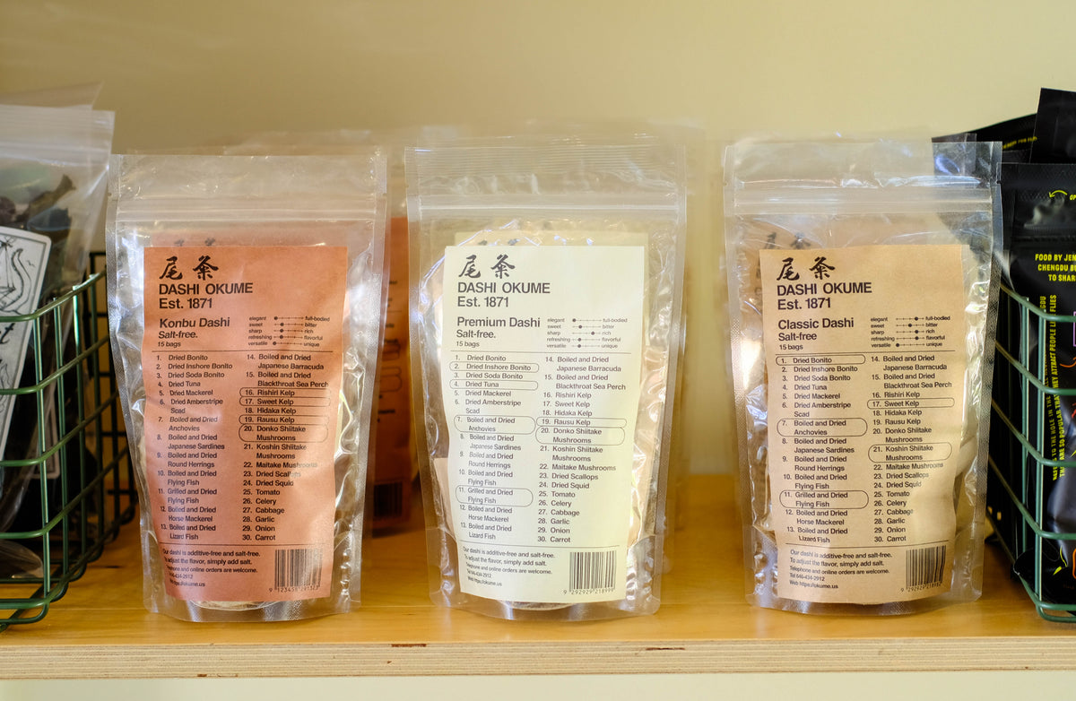 Like our beloved Dashi Okume Standard Dashi, but with a richer combination of silky smooth umami. Adds an extra layer of depth to any dish! Just steep a bag in some water for pure, super savory broth in minutes!